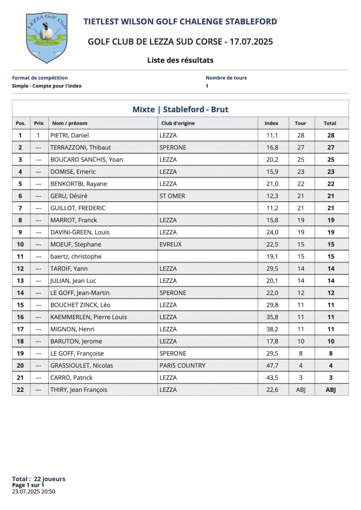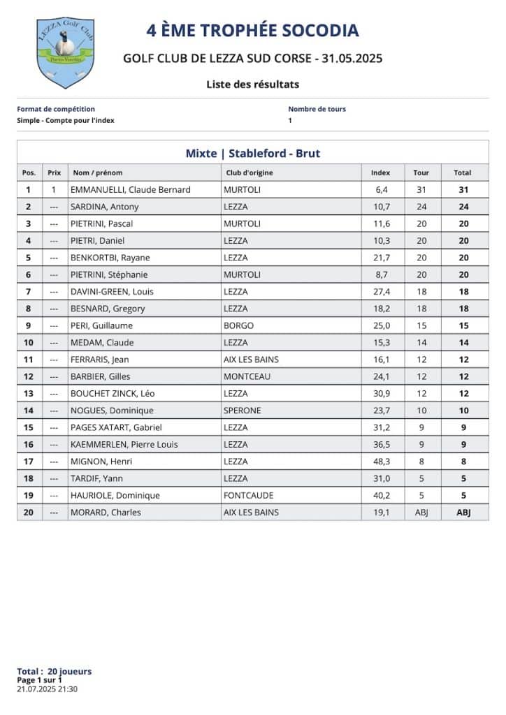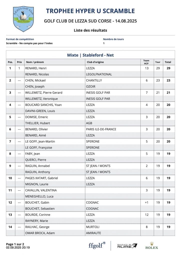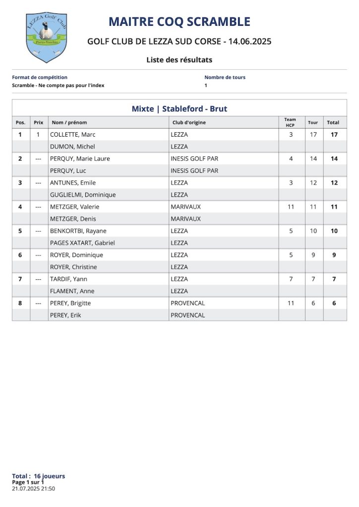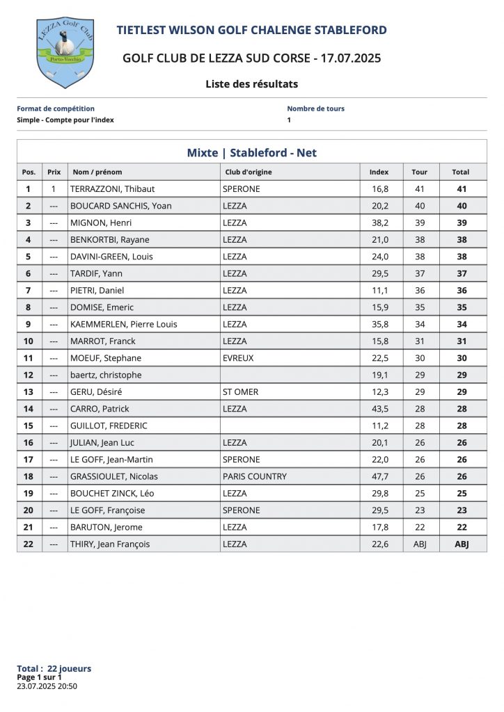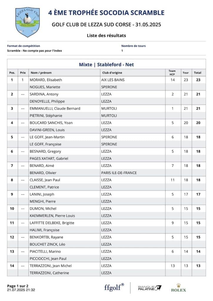 L’article Résultats Coté Golf est apparu en premier sur Golf Club de Lezza.