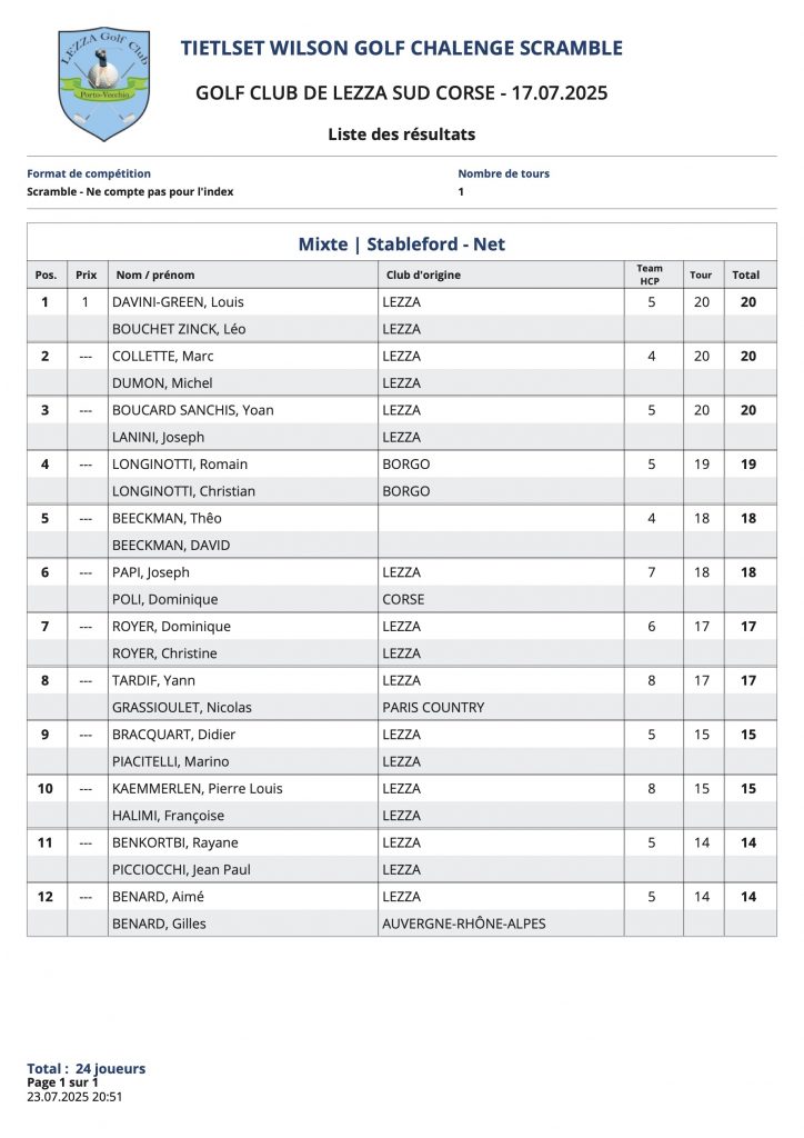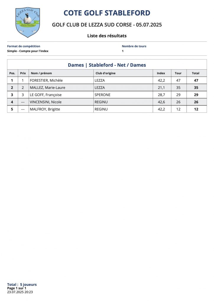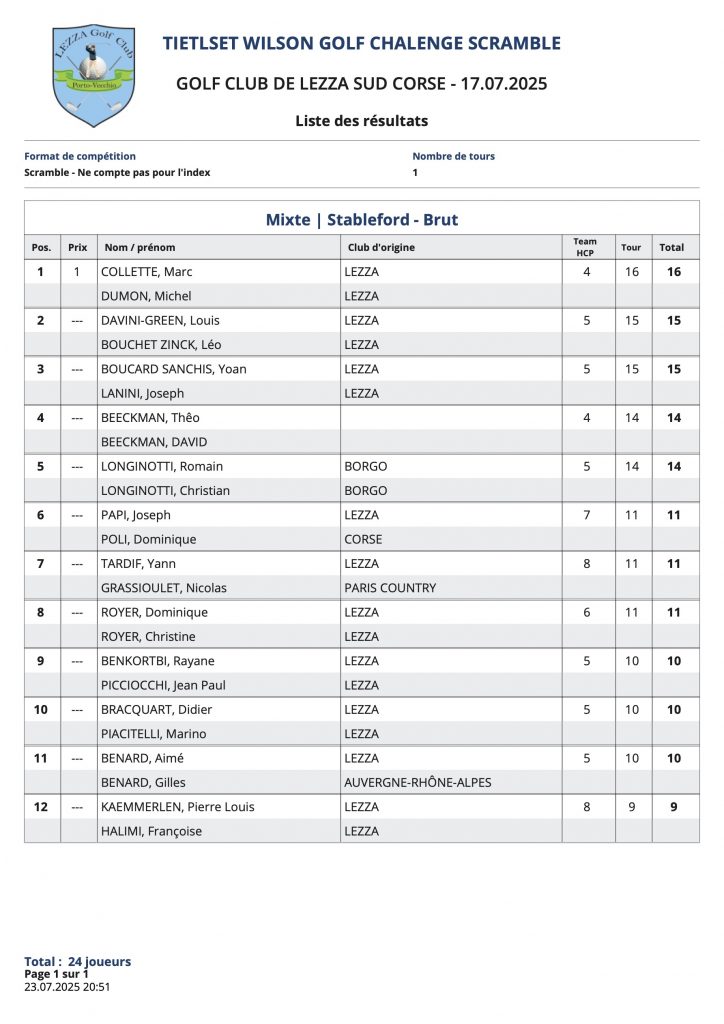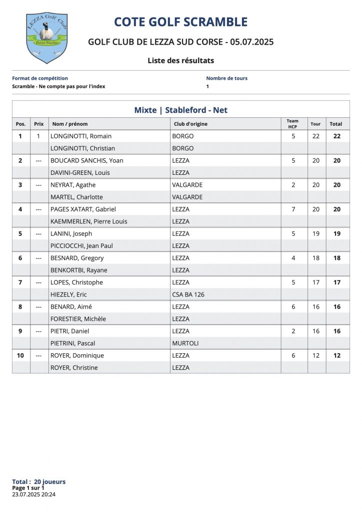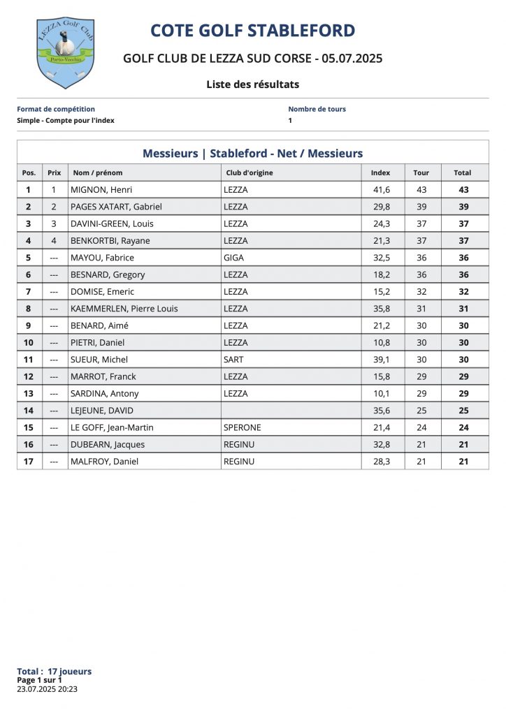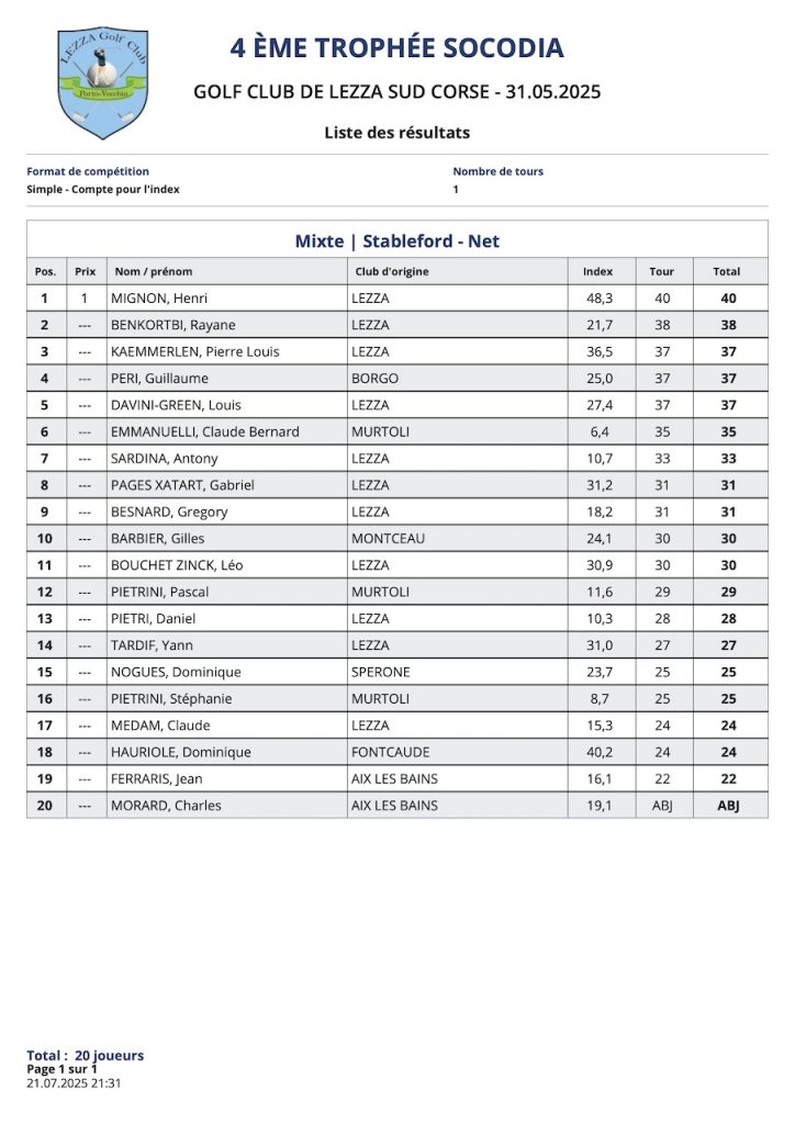 L’article Résultats Coté Golf est apparu en premier sur Golf Club de Lezza.