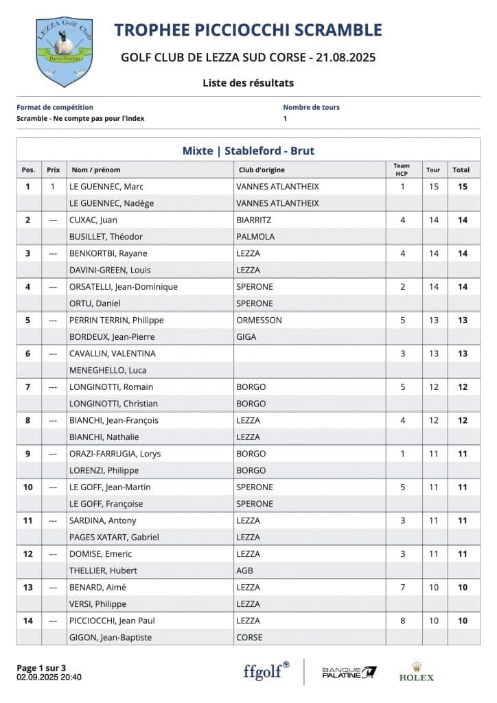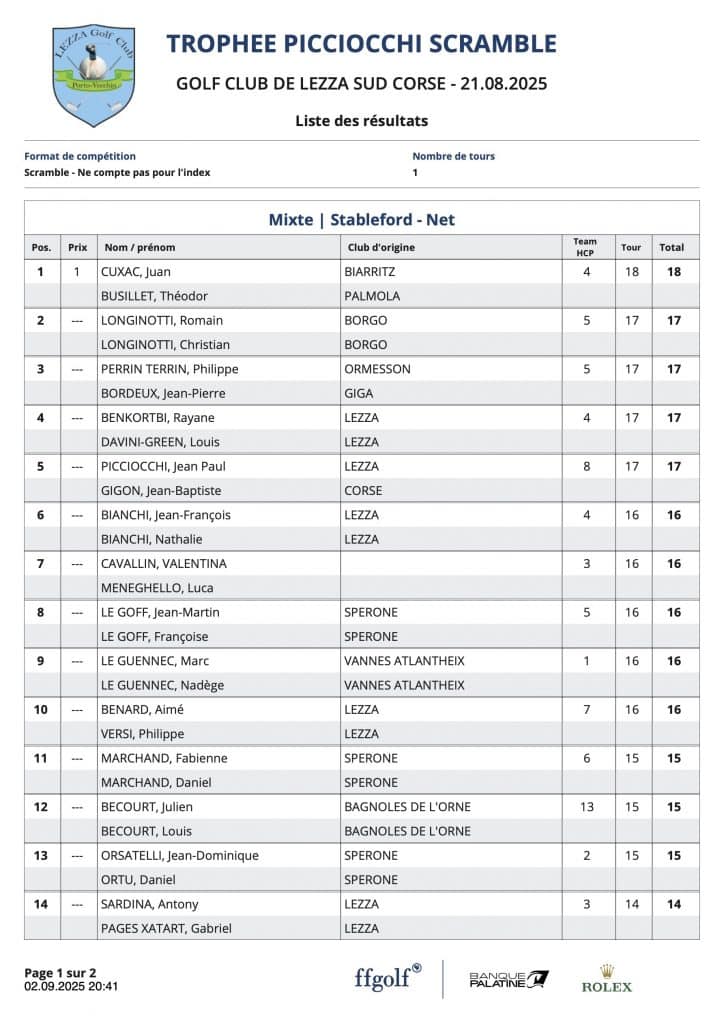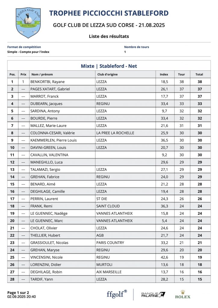 L’article Résultats Picciocchi est apparu en premier sur Golf Club de Lezza.