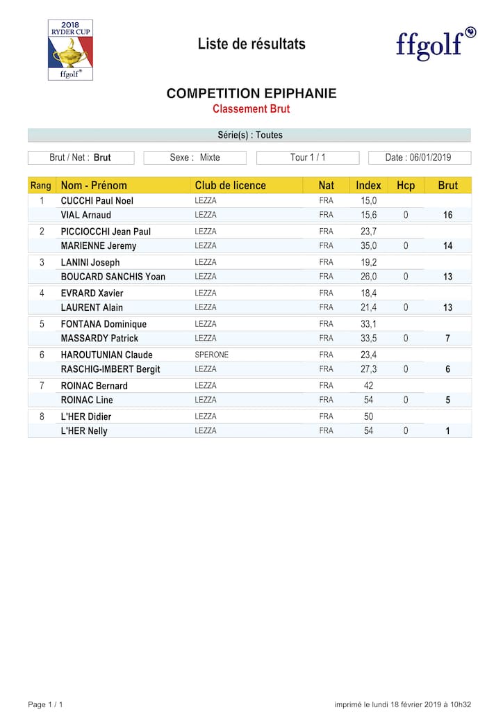 Merci à tous les participants et au sponsor pour votre fidélité !!! Grâce à vous, cette compétition a été un beau succès pour le golf de Lezza et un moment de partage pour tous.