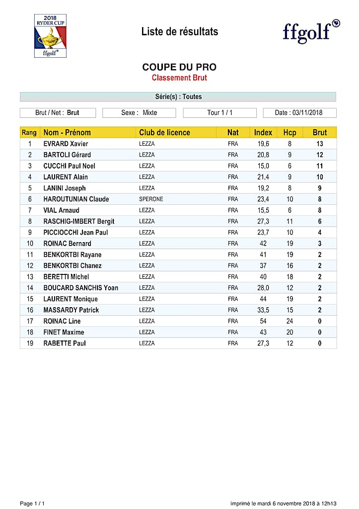 Merci à tous les participants et au sponsor pour votre fidélité !!! Grâce à vous, cette compétition a été un beau succès pour le golf de Lezza et un moment de partage pour tous.