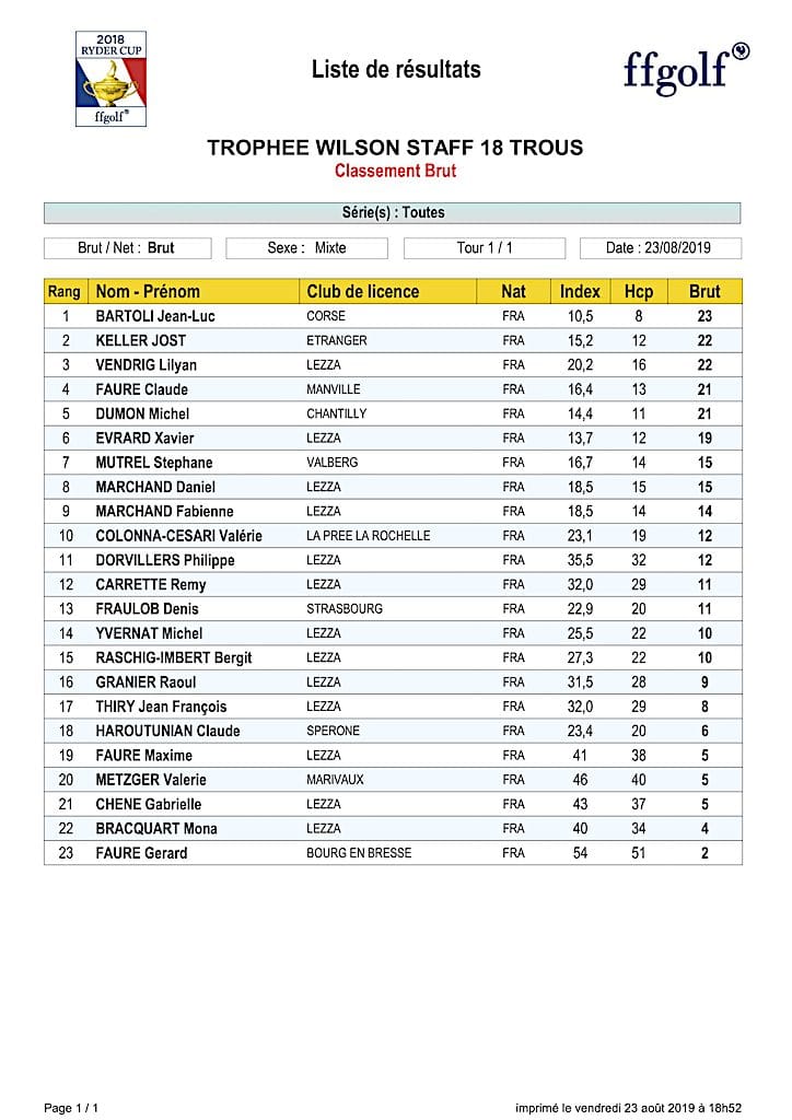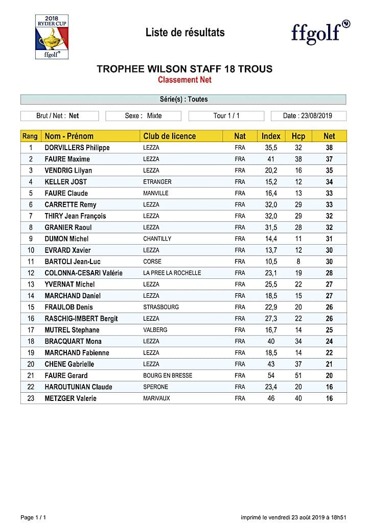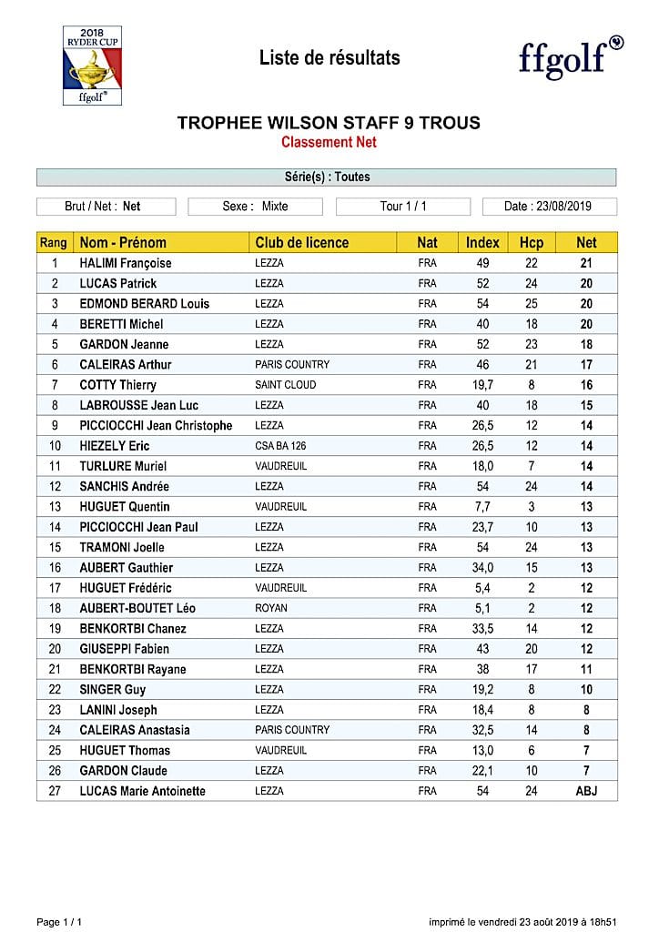 Merci à tous les participants et au sponsor !!! Grâce à vous, cette compétition a été un beau succès pour le golf de Lezza et un moment de partage pour tous.