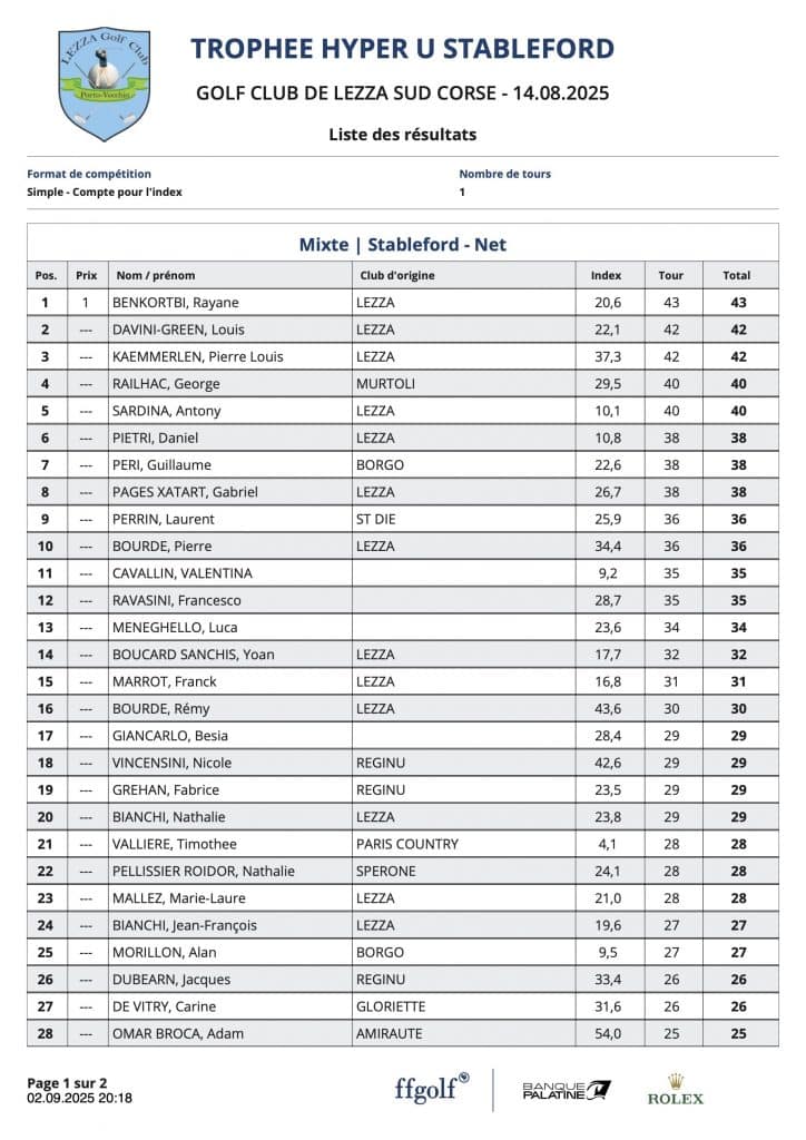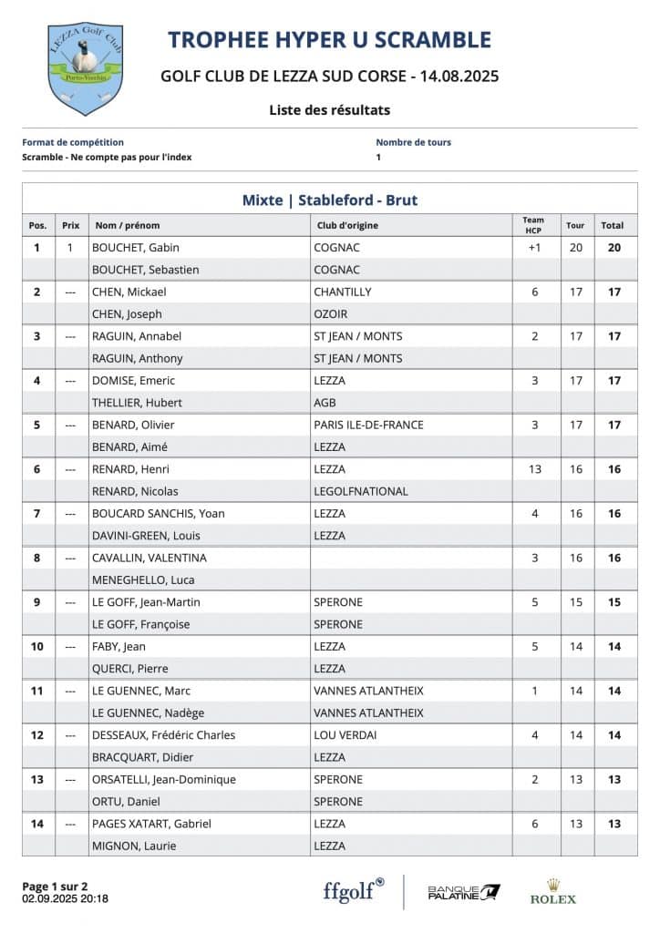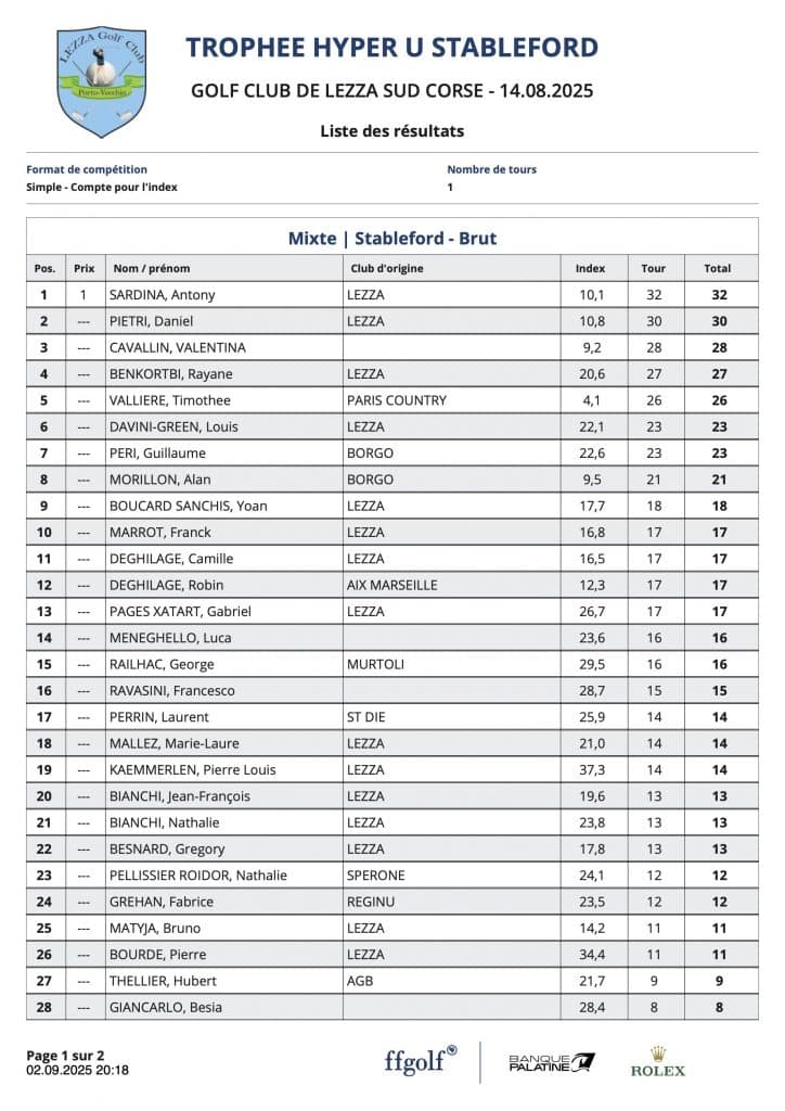 Merci à tous les participants et au sponsor !!! Grâce à vous, cette compétition a été un beau succès pour le golf de Lezza et un moment de partage pour tous.
