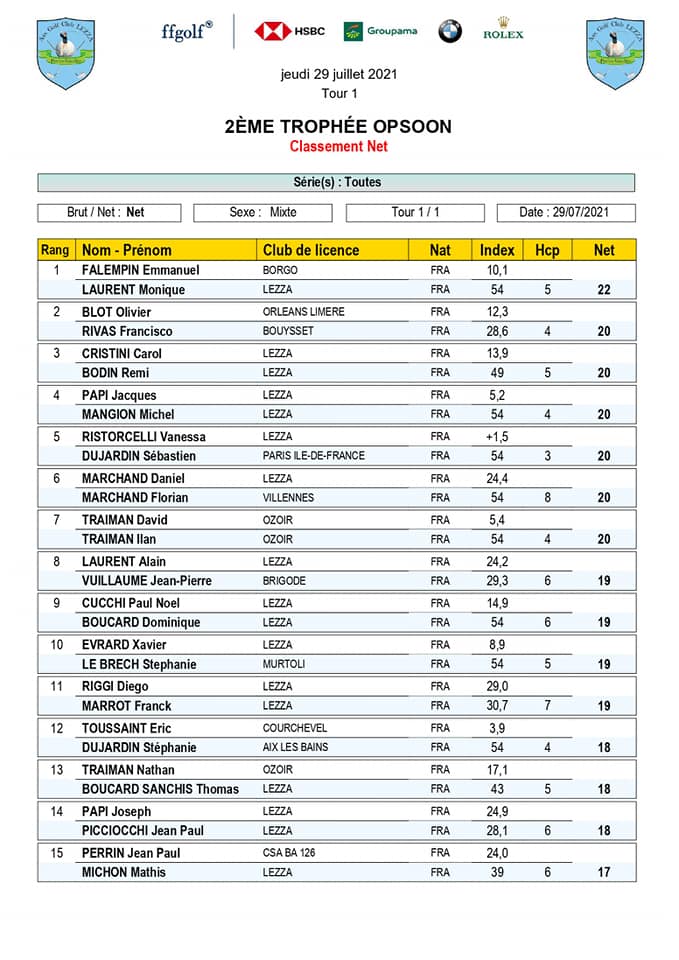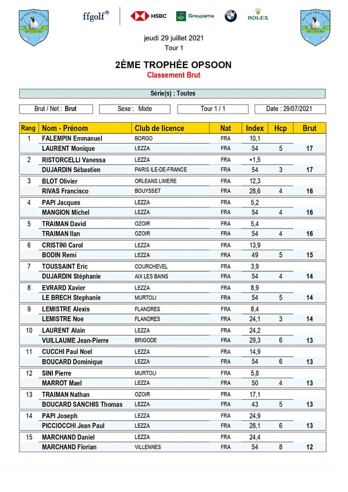 Merci à tous les participants et au sponsor pour votre fidélité !!! Grâce à vous, cette compétition a été un beau succès pour le golf de Lezza et un moment de partage pour tous.