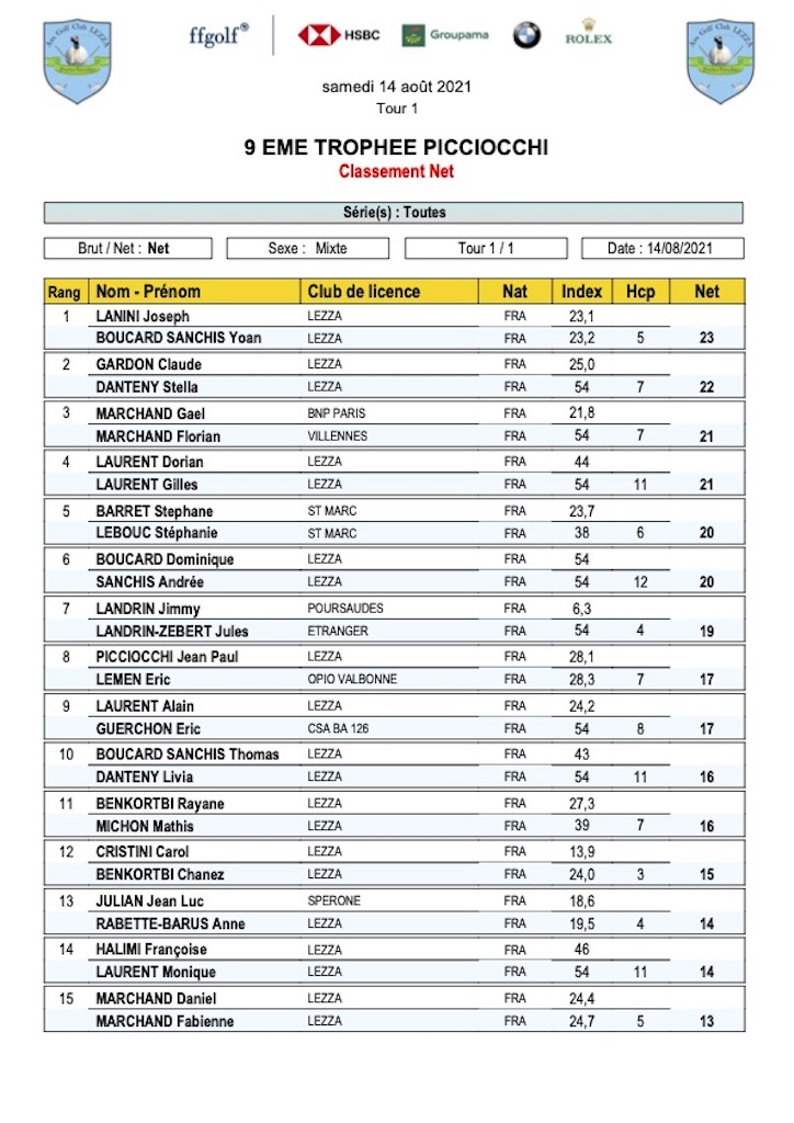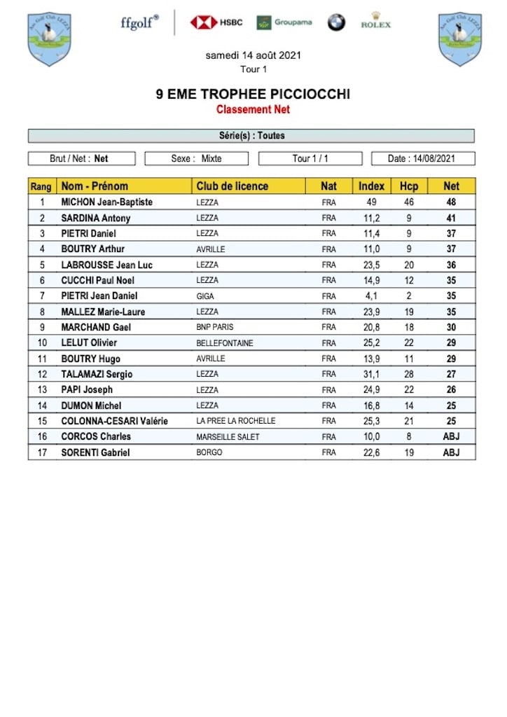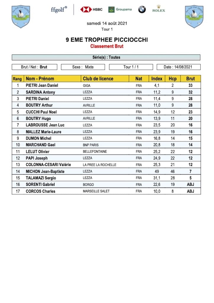 Veuillez trouver ci-dessous les résultats de la Picciocchi Cup qui a eu lieu le Samedi 14 Aout 2021.